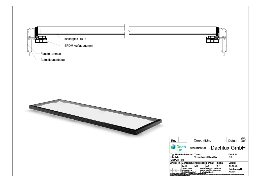Das Flachdachfenster ClearSky ist von den unabhängigen Notifizierten Stellen SKG-IKOB- und Kiwa/BDA-geprüft.