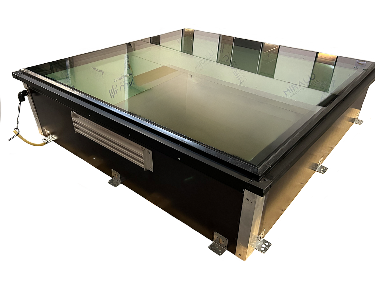 Die Belüftung muss nicht immer aus einem kompletten Fensterflügel bestehen, der geöffnet und geschlossen werden kann. In manchen Situationen reicht ein Lüftungsgitter aus. Neben unseren elektrisch zu öffnenden Flachfenstern bieten wir optional auch diese werkseitig im Aufsatzkranz integrierten Lüftungsgitter an.