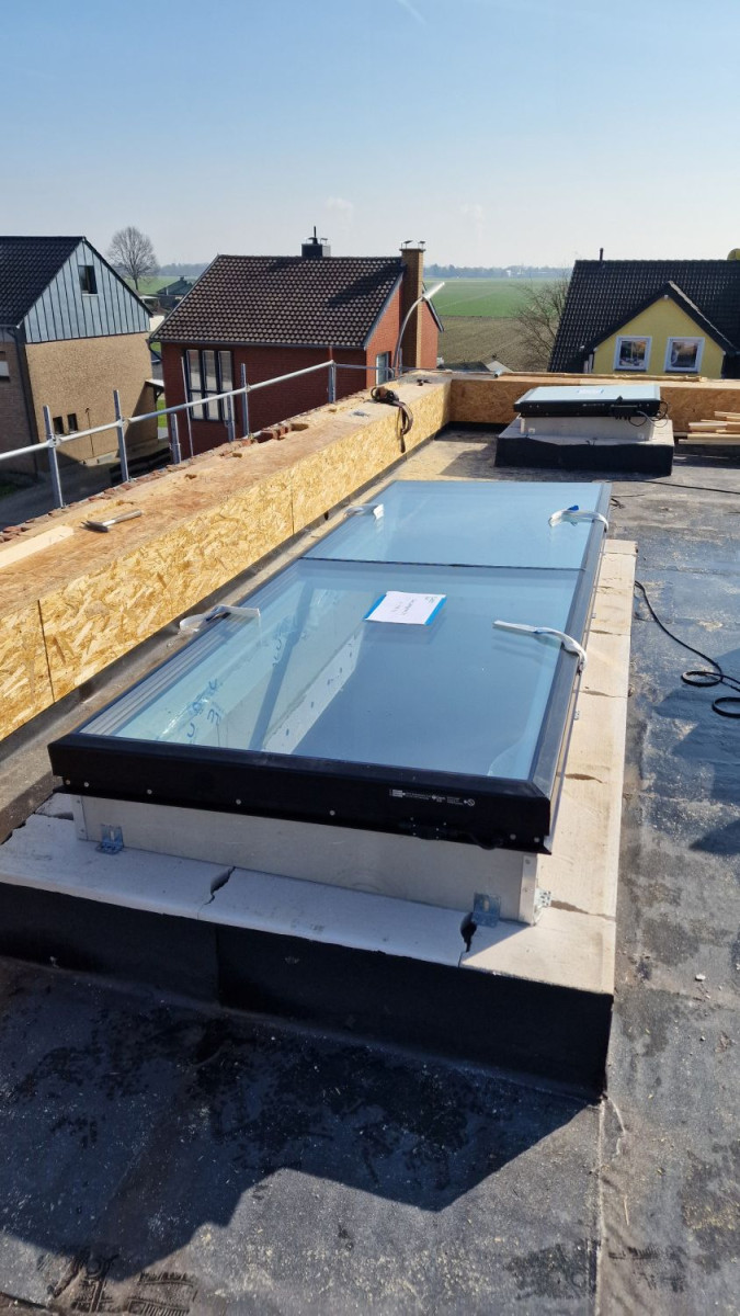 dem Einbau von vier Flachdachfenstern.