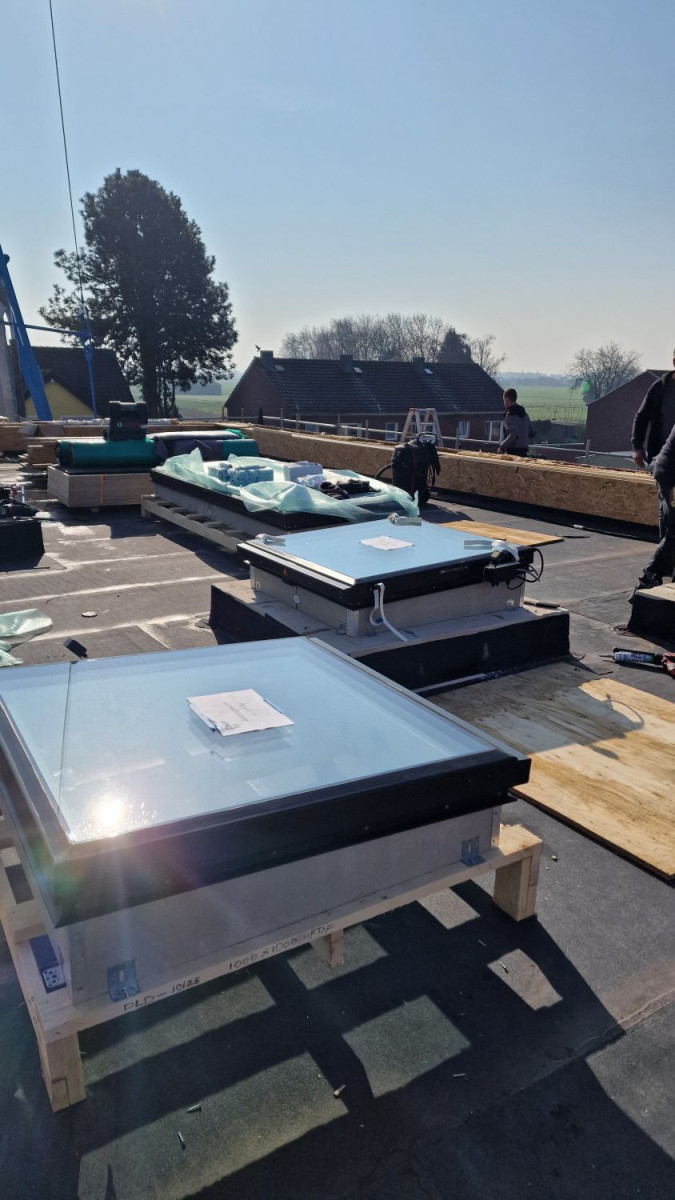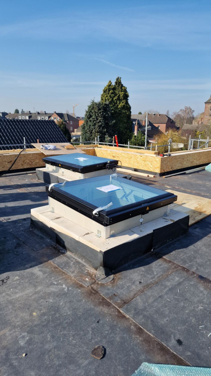 dem Einbau von vier Flachdachfenstern.